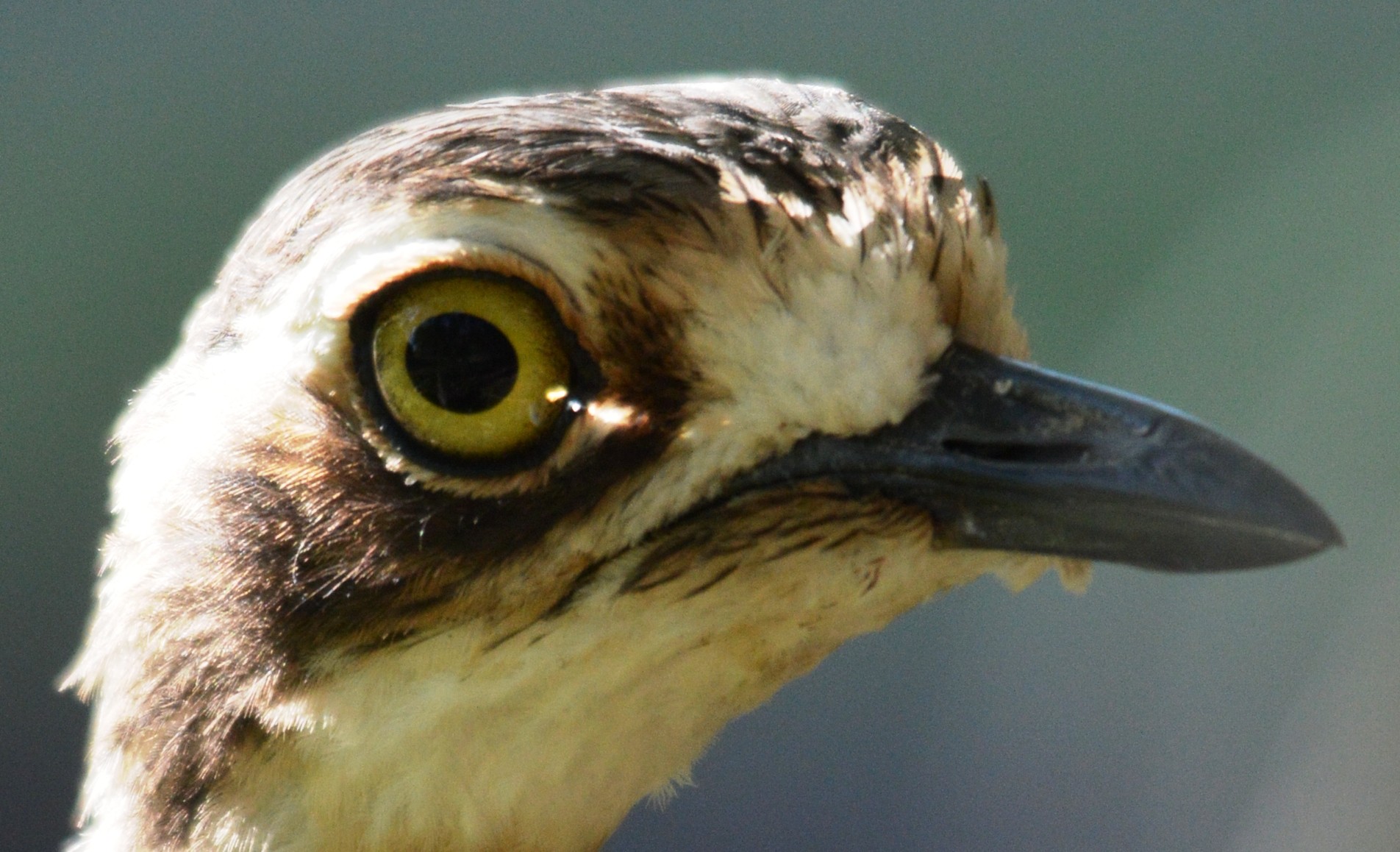 A Bush stone-curlew. Light passing through its eye from the left, has, like a magnifying glass, focused into a point on the right side.