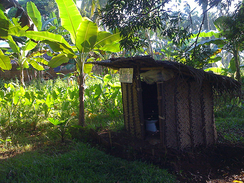 Arborloo in Africa with bananas growing around it. Photo: SuSan. Commons.Wikimedia.