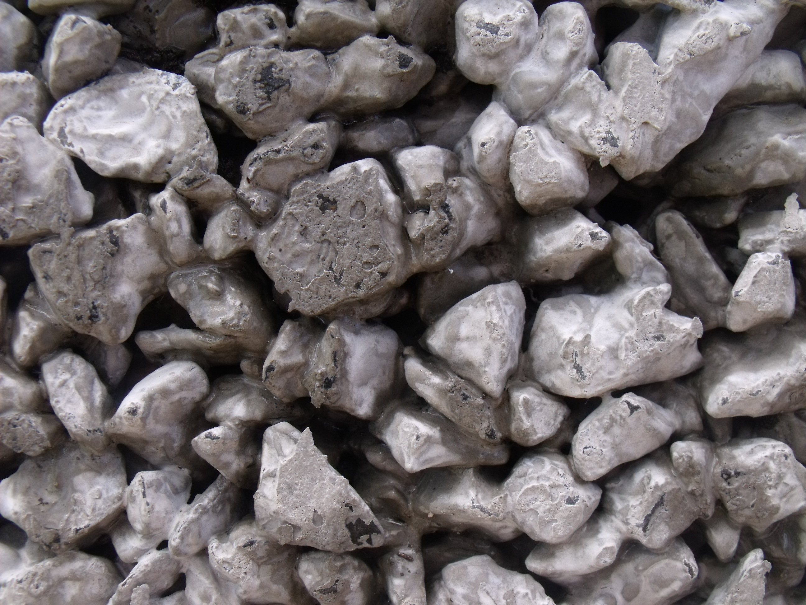 Close up of no-fines or pervious concrete showing pores between aggregate. Photo: David Clode.