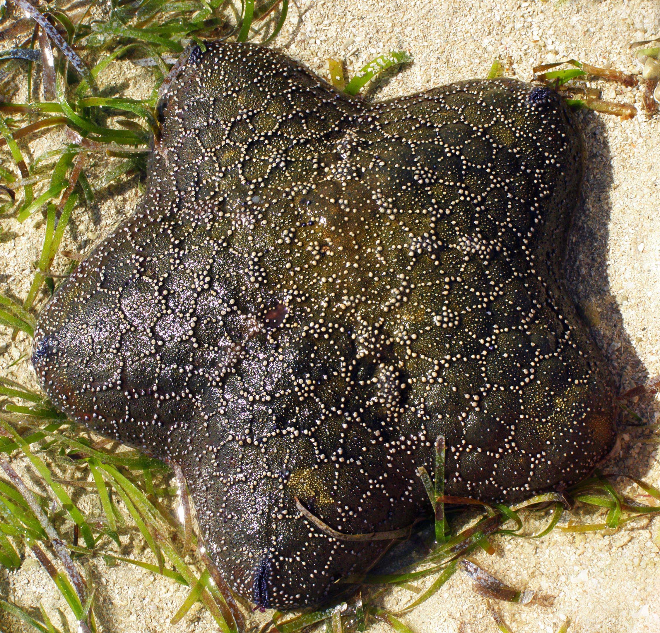 Sea star (starfish) about 30 cm or 12 inches in diameter in sea grass beds, Green Island, Great Barrier Reef, Australia. Photo: David Clode.