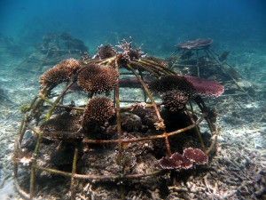 Coral growing on a metal frame. Photo: savecoralreefs.org.