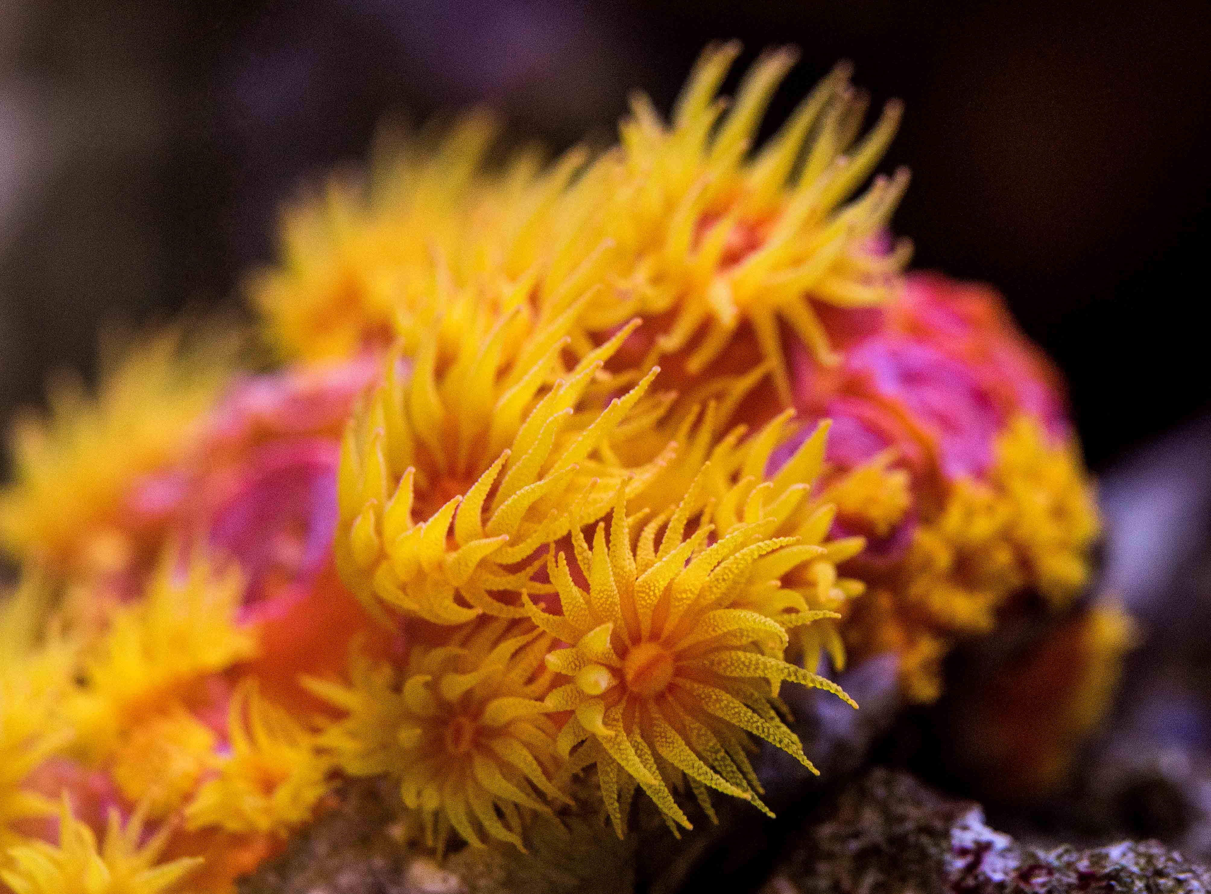 Macro photo of bioluminescent coral at the Cairns Aquarium. Photo: David Clode.