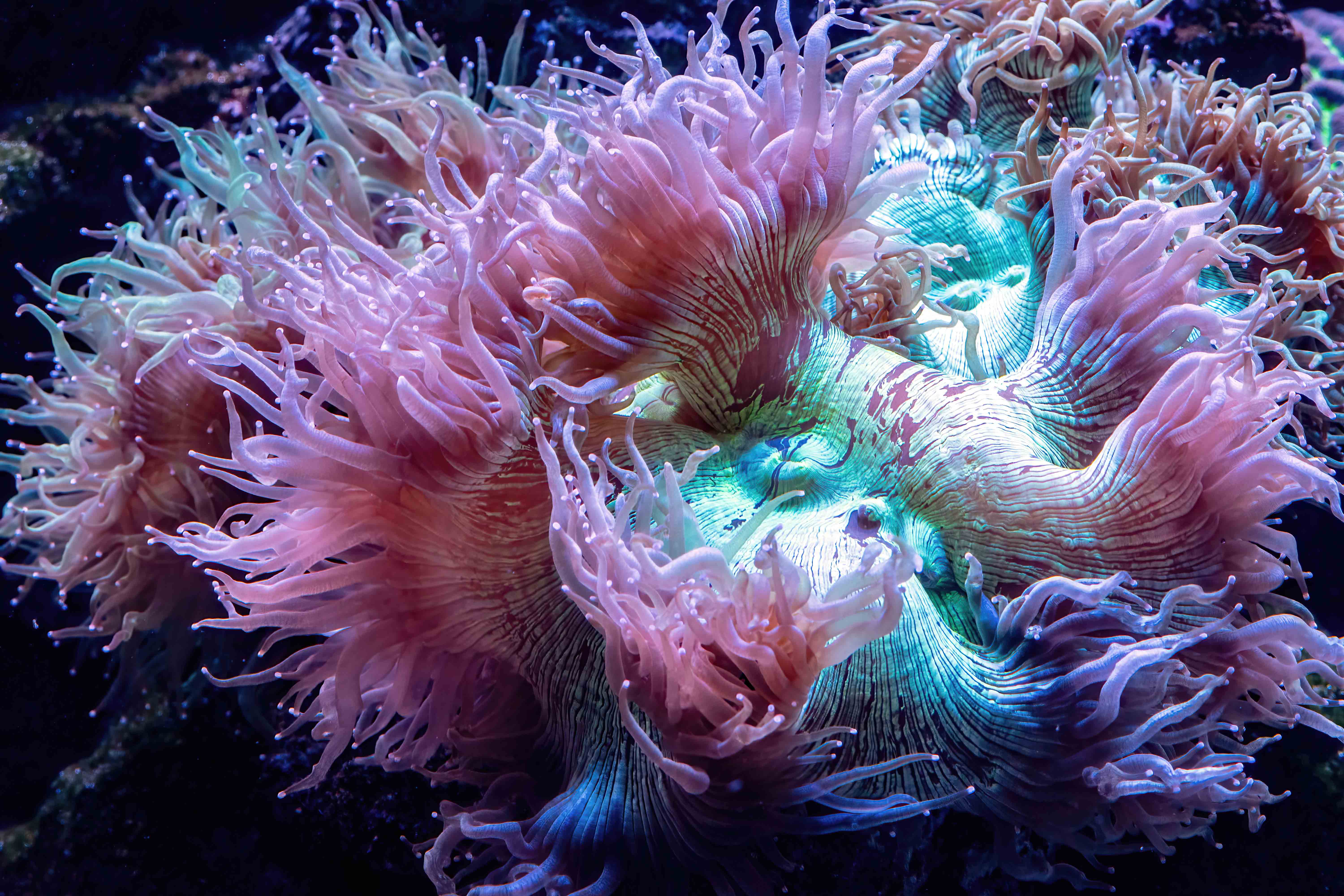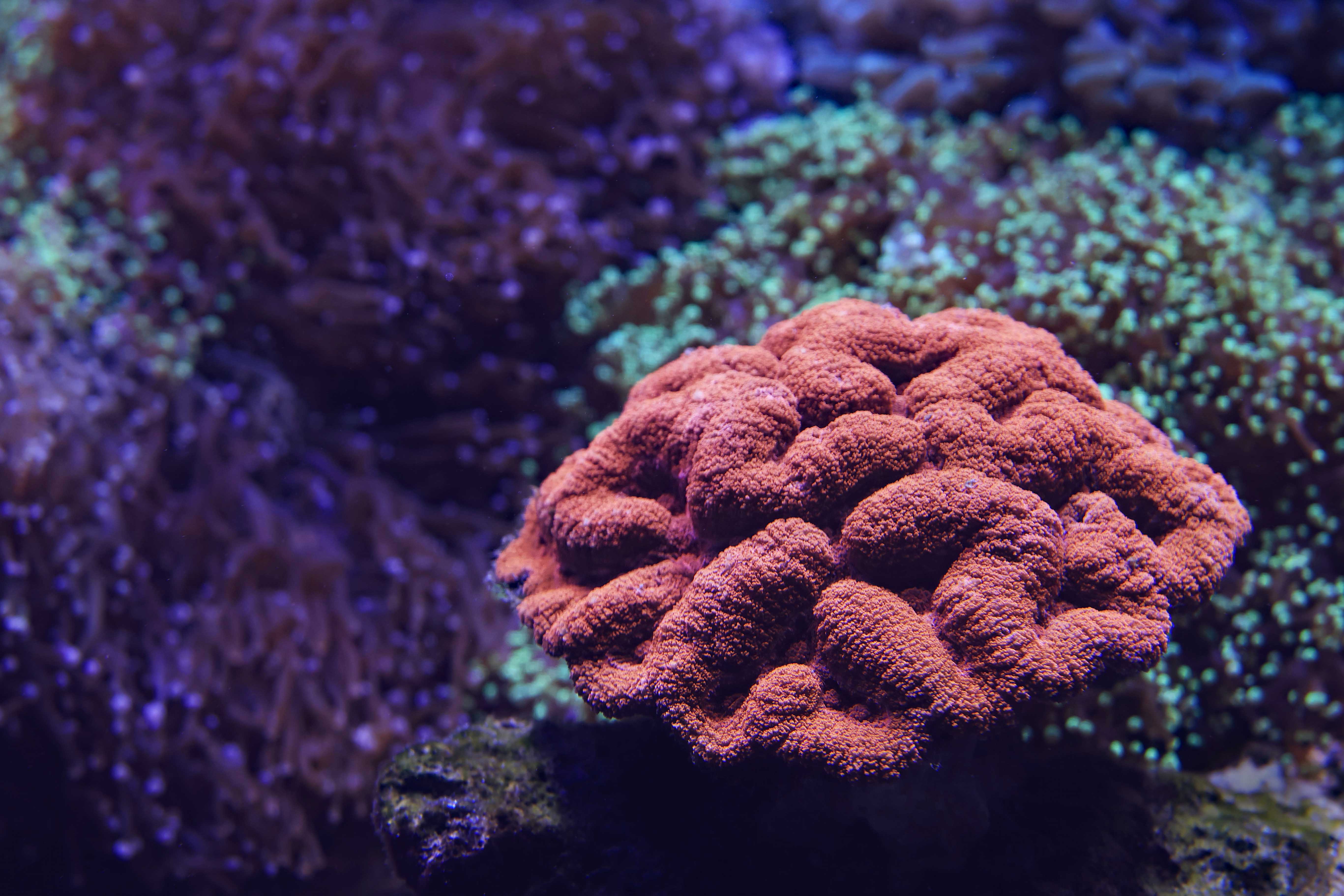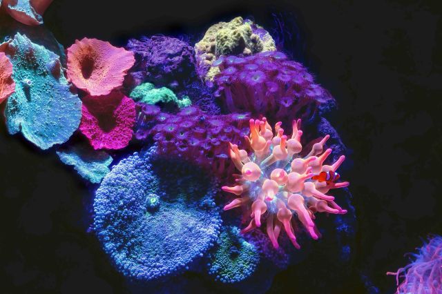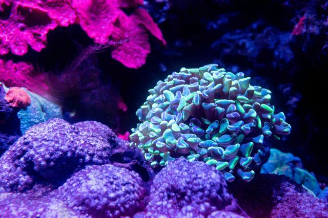 Bioluminescent corals at the Cairns Aquarium in Australia. Photo: David Clode.