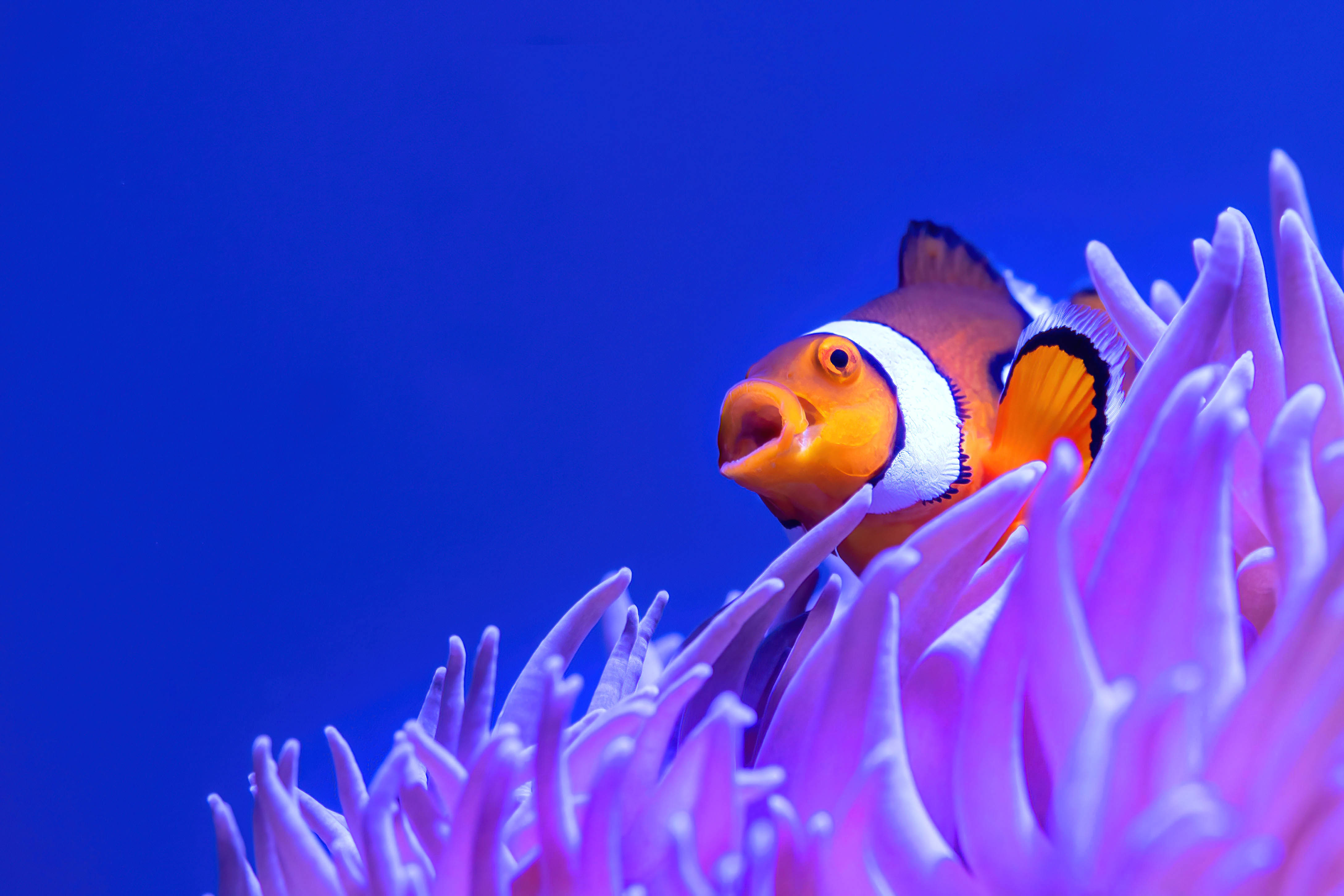Space on the left for text, for example advertising a beach clean up day. Clown Anemonefish (Nemo) at the Cairns Aquarium. Photo: David Clode.