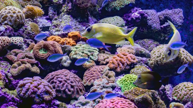 Fish and corals at the Cairns Aquarium. The aspect ratio of this photo makes it suitable for a computer wallpaper. Photo: David Clode.