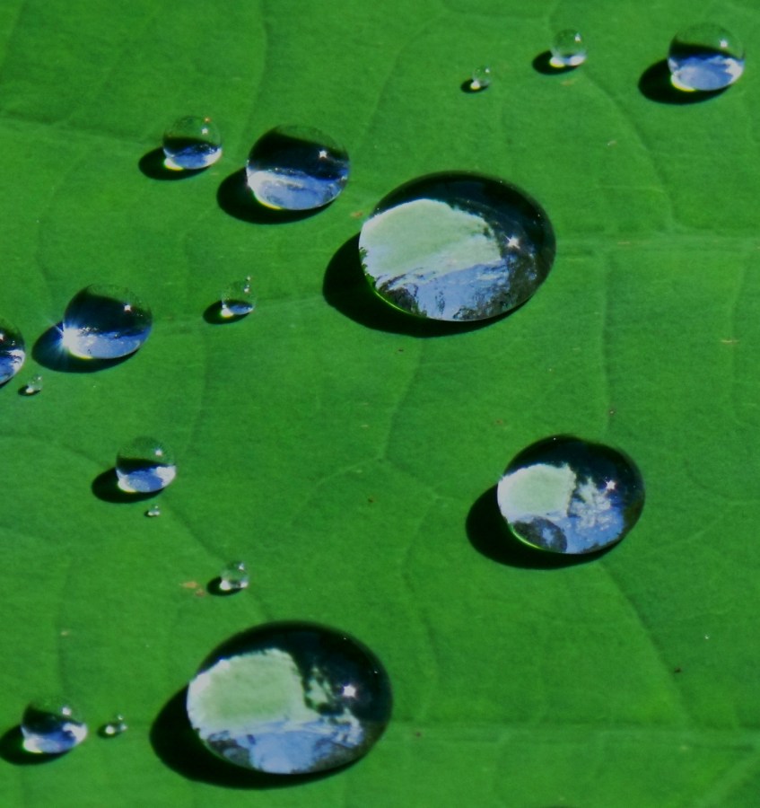 Dewdrops on waterlily leaf. Reforestation.me.