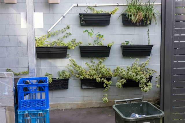 Greenery can be a key feature not just in larger gardens and parks, but also in small spaces such as alleys, with green walls or vertical gardens, creeping plants on walls, and semi-circular hanging baskets or planter boxes fixed to walls. Small courtyards can have seats, raised garden beds, planter boxes, pot plants, bird baths, bird feeder tables, nest boxes and ponds. Seats should be functional and attractive, and if possible, in shady places as well as in sunny places, and in open places as well as in quieter, private places.