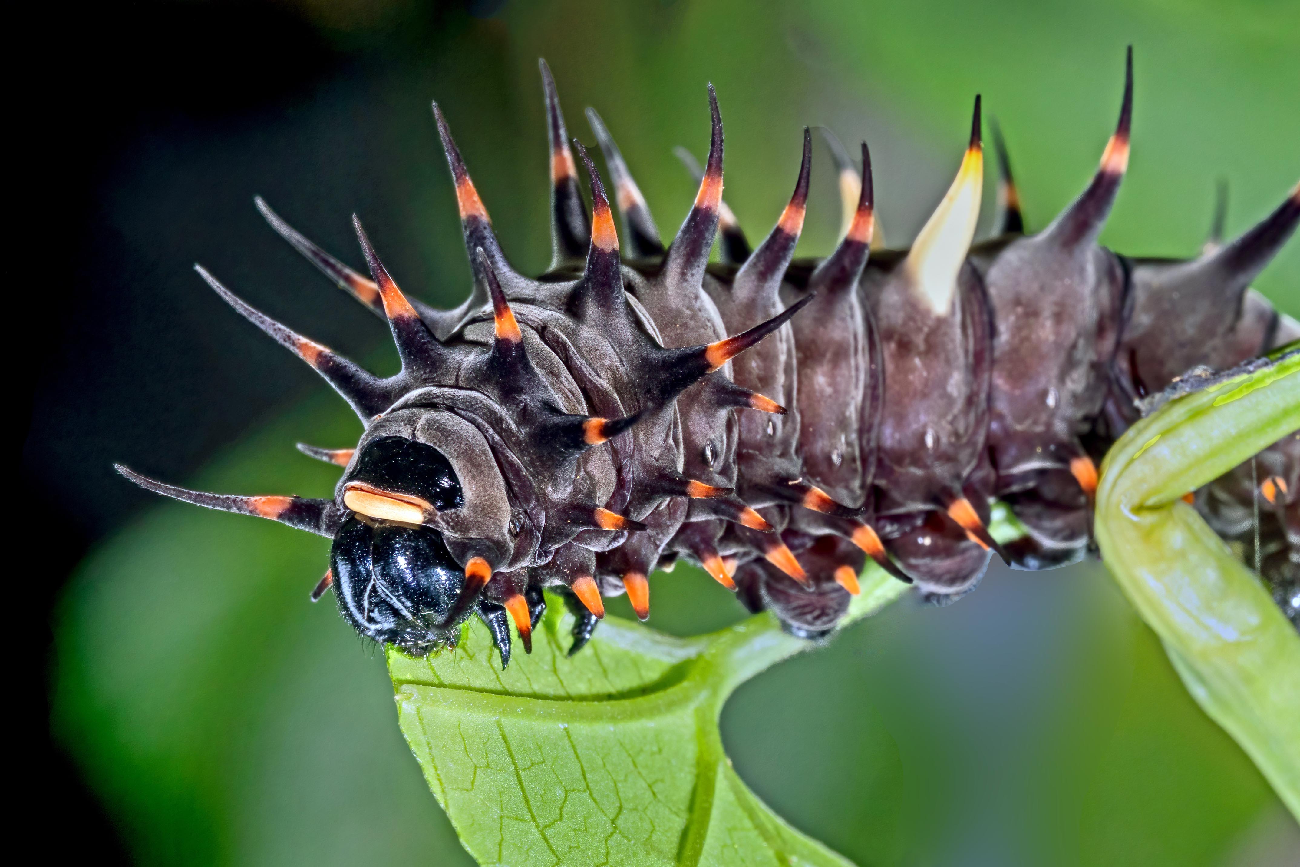 Caterpillar of a Cairns Birdwing Butterfly. Cairns Botanic gardens. Photo by David Clode.