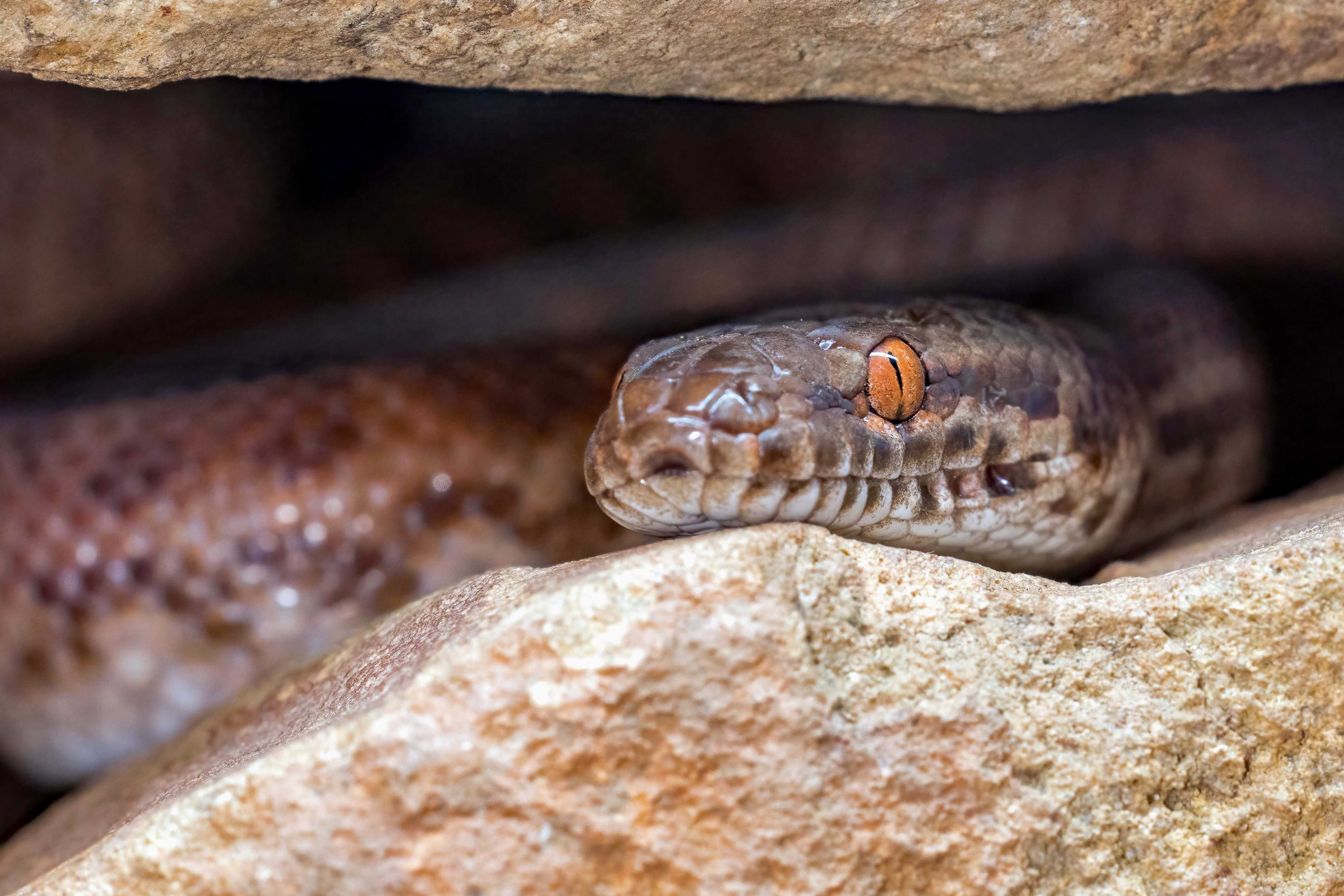 A Pygmy Python at Hartleys Crocodile Adventures, near Cairns, Australia. The smallest type of python in the world. Photo: David Clode.