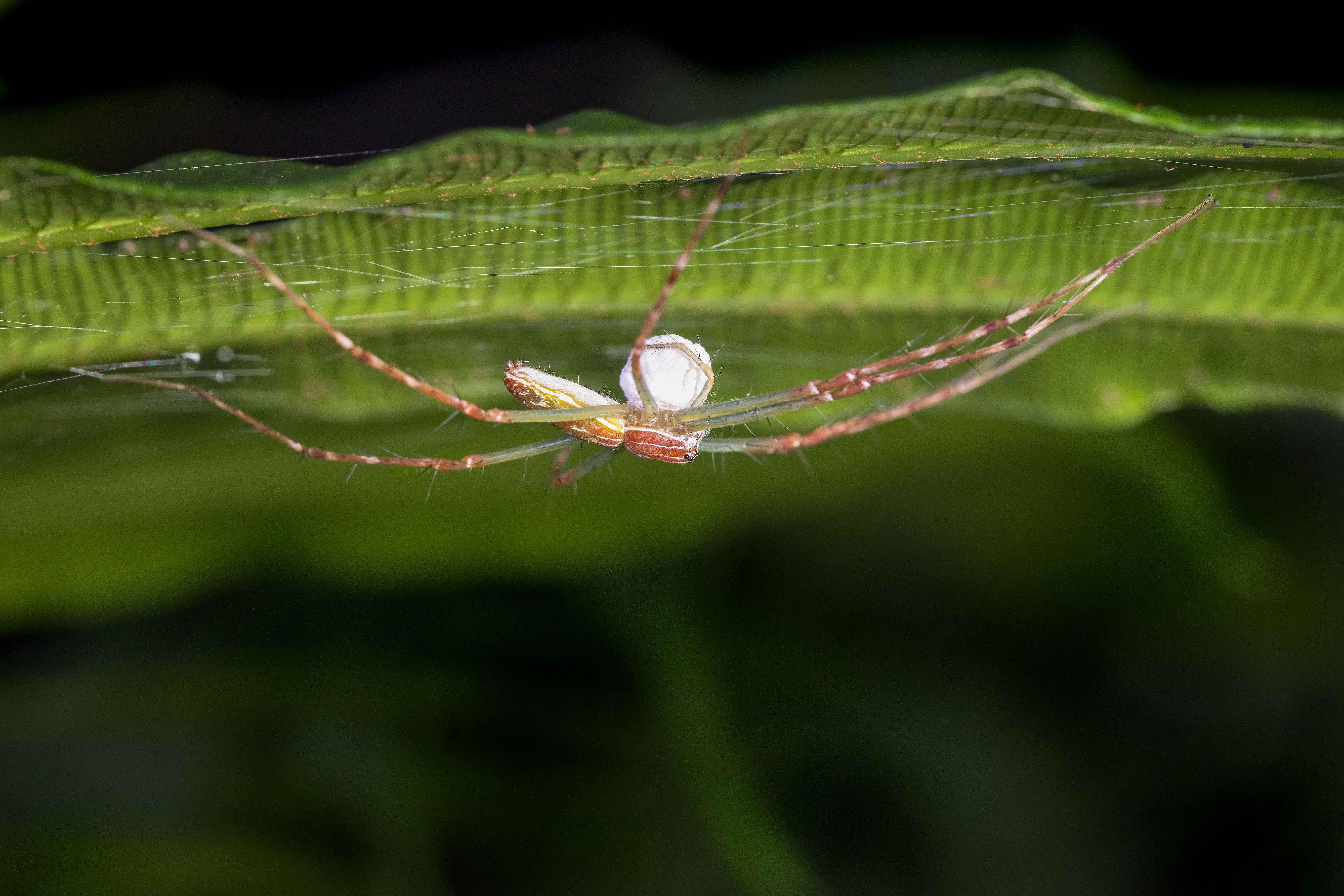 A spider protecting her egg sac, underneath the leaf of a King Fern. Cairns Botanic gardens. David Clode.