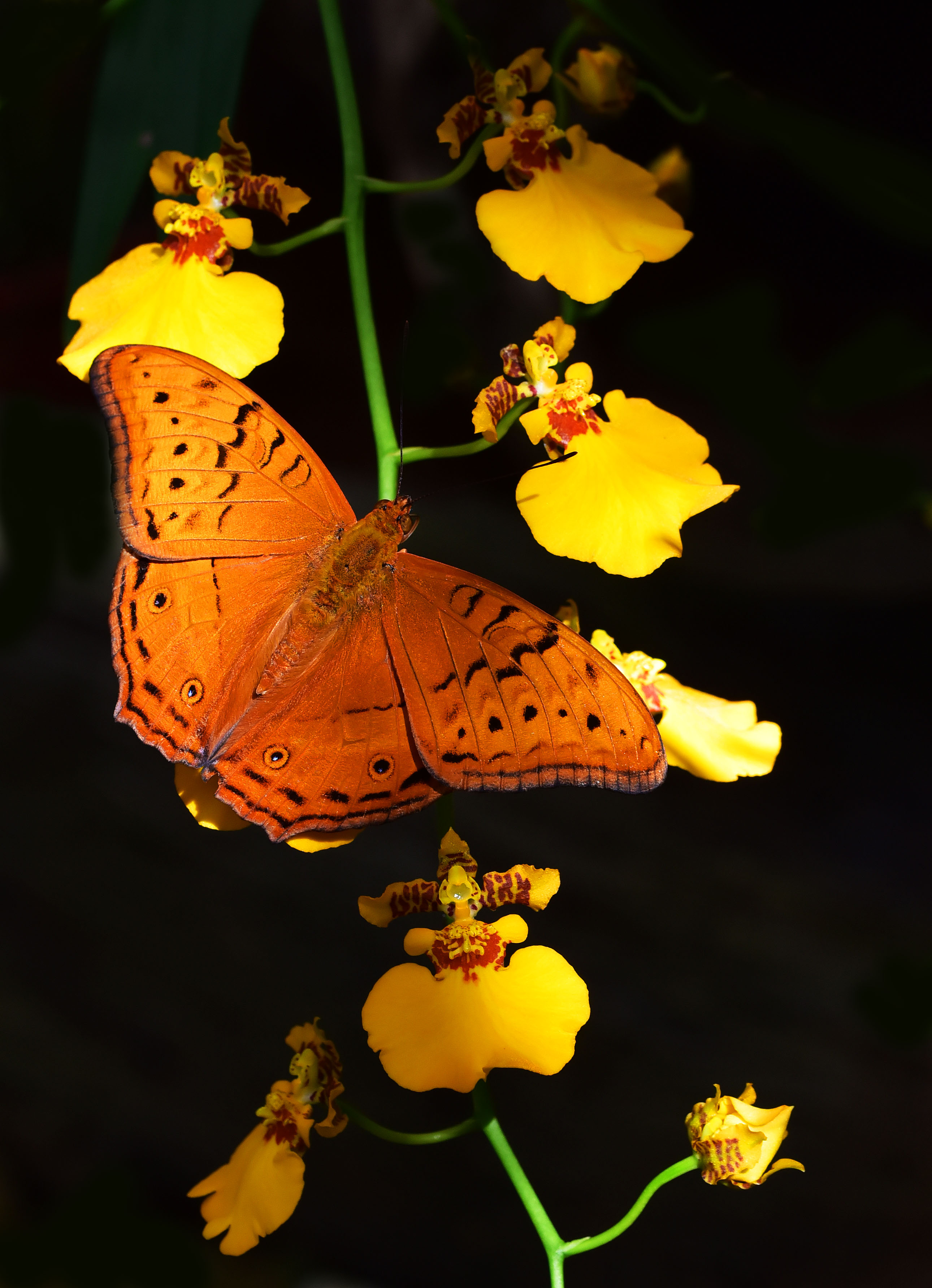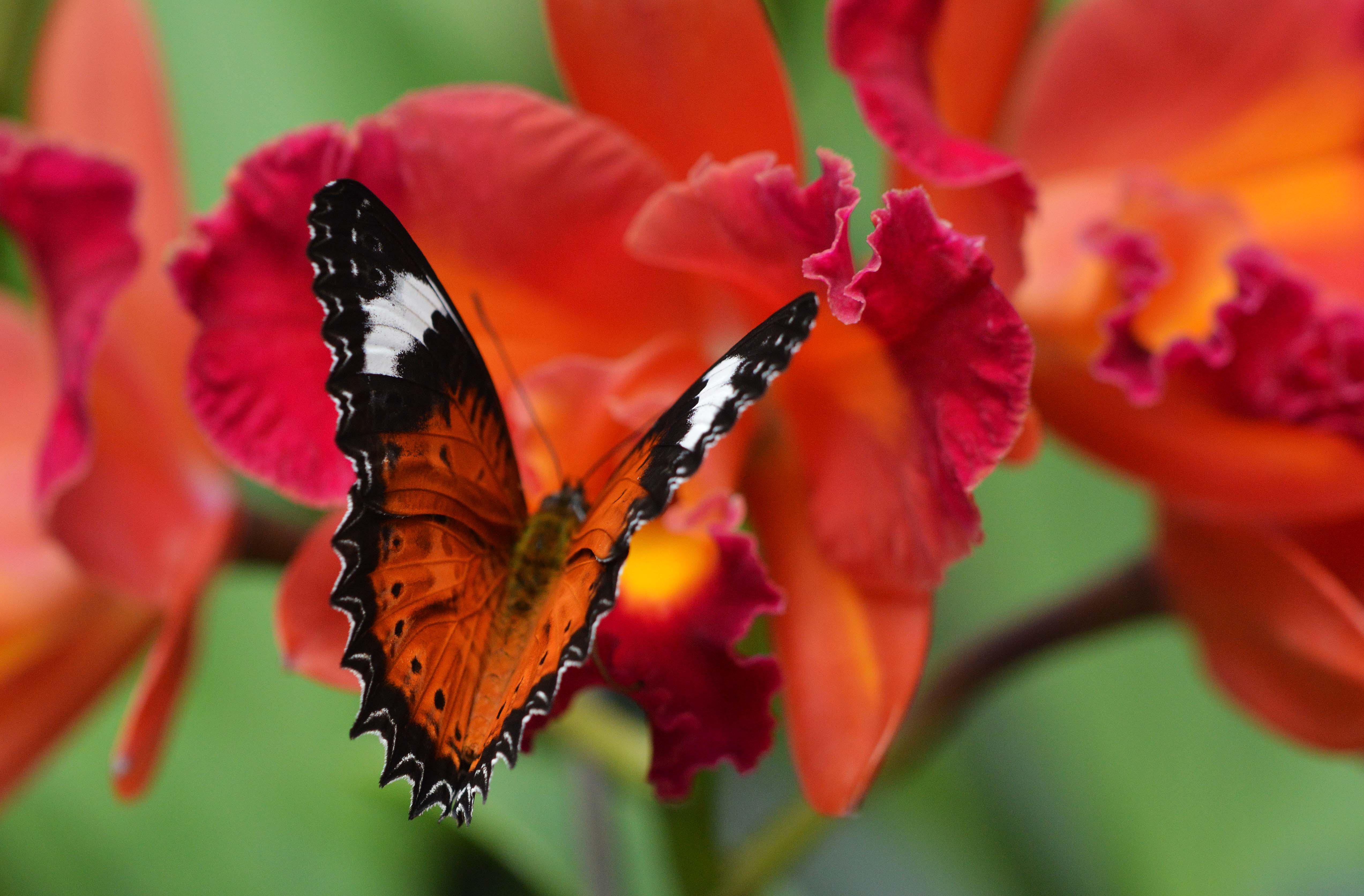 Orange Lacewing on Cattleya orchid. Coservatory. Photo: David Clode.