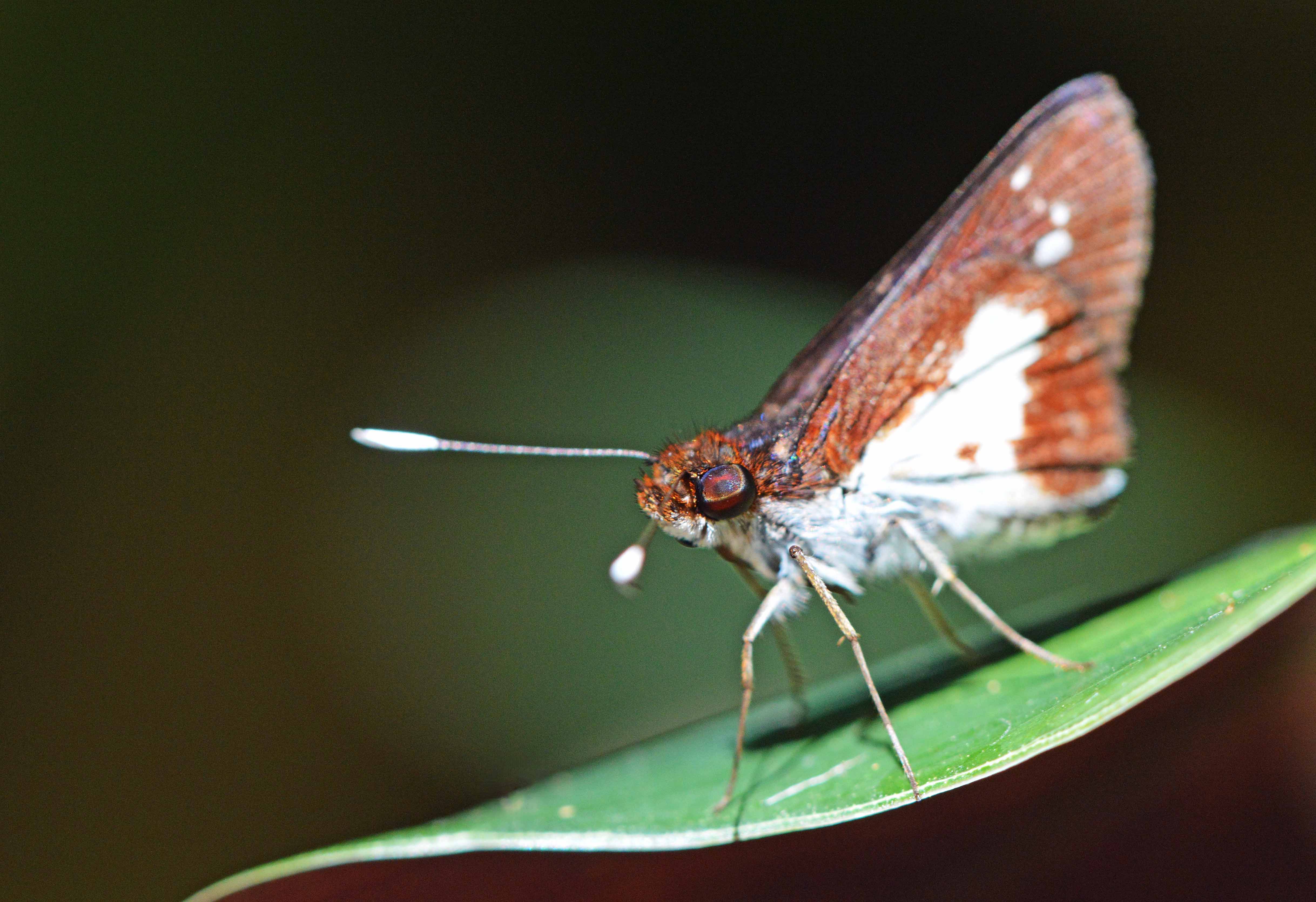 A butterfly lays an egg at the Kuranda butterfly sanctuary. Photo: David Clode.