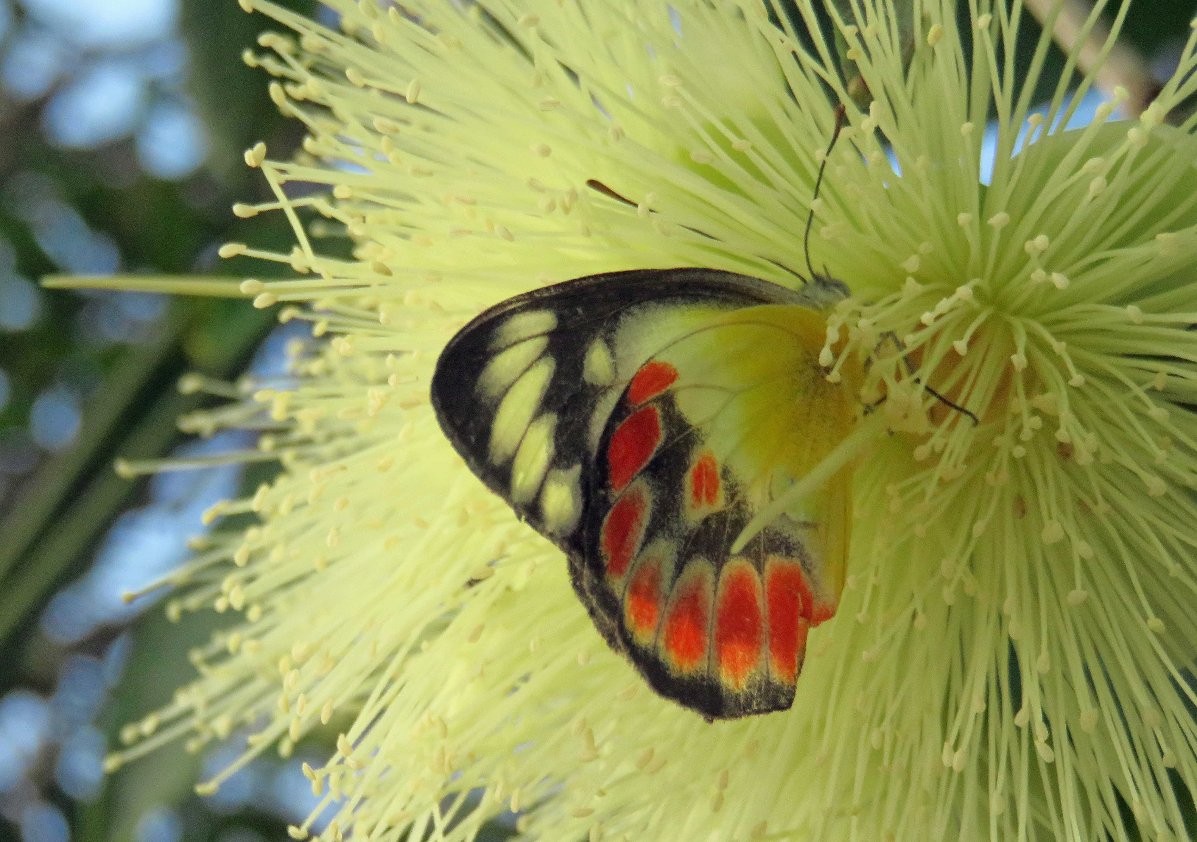 Northern Jezabel Delias argenthona, deep inside a Syzigium malaccense flower. Cairns cemetery. Photo: David Clode.