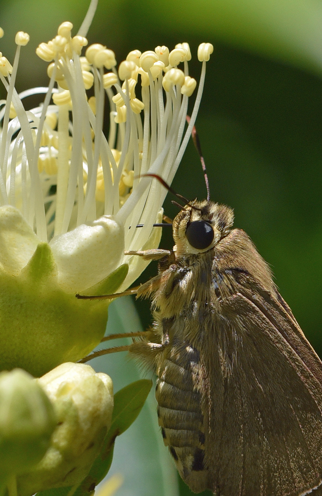 A rather hirsute Skipper. Possibly a Black Skipper Toxidia melania. In the wild, Mount Whitfield, Cairns. Photo: David Clode