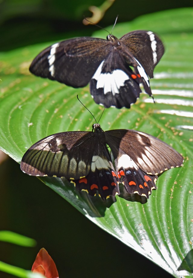 Male Birdwing attends female. Photo: David Clode. Cairns Botanic Gardens conservatory.
