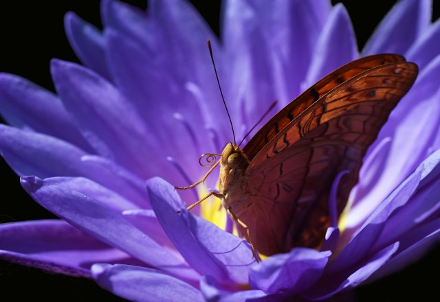 Male Cruiser butterfly visits a water lily flower for nectar. Photo: David Clode.
