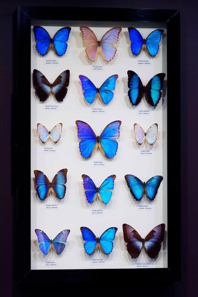 A collection of South American Morpho butterfly species. Australian butterfly sanctuary. Photo: David Clode.