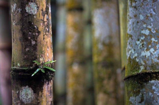 A young fern (probably Asplenium sp.) germinating on a bamboo culm. Cairns, Australia. Photo: David Clode.