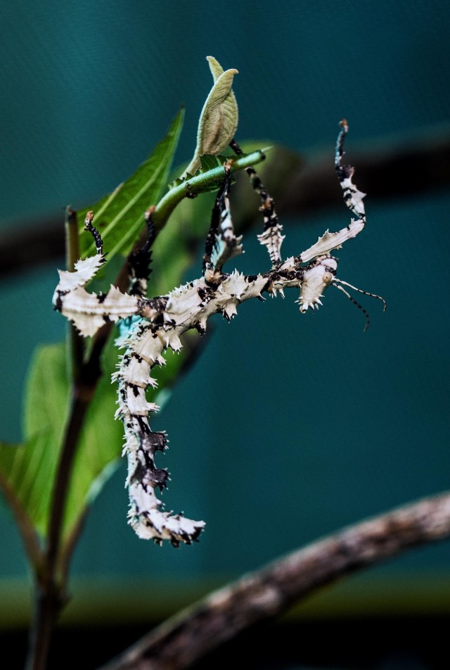 A Spiny Leaf Insect which mimics a lichen-covered twig. Photo: Cairns aquarium, David Clode.