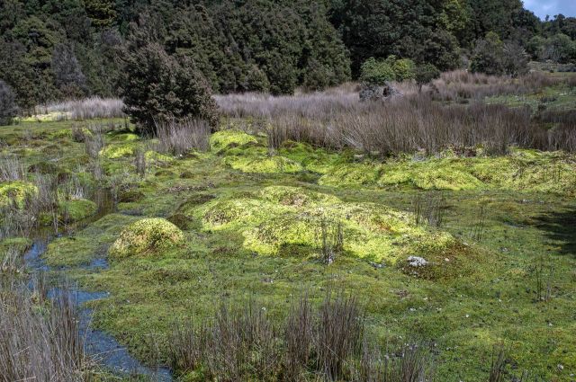 Sphagnum moss mounds, near the Goblin Forest, Tasmania. Photo: David Clode.