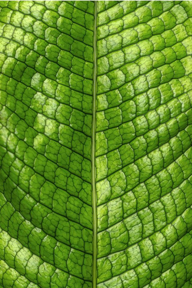 Leaf stem of Amorphophallus variabilis x A. decus-silvae. This is a young leaf stem, with a smooth surface, and about 5cm in diameter. In the rain forest, there are many insects and animals looking for soft young plant growth to eat, and this camouflage mimics an old, lichen-covered tree stem, which may possibly help to protect it from being eaten. Photo: David Clode.