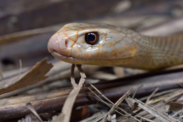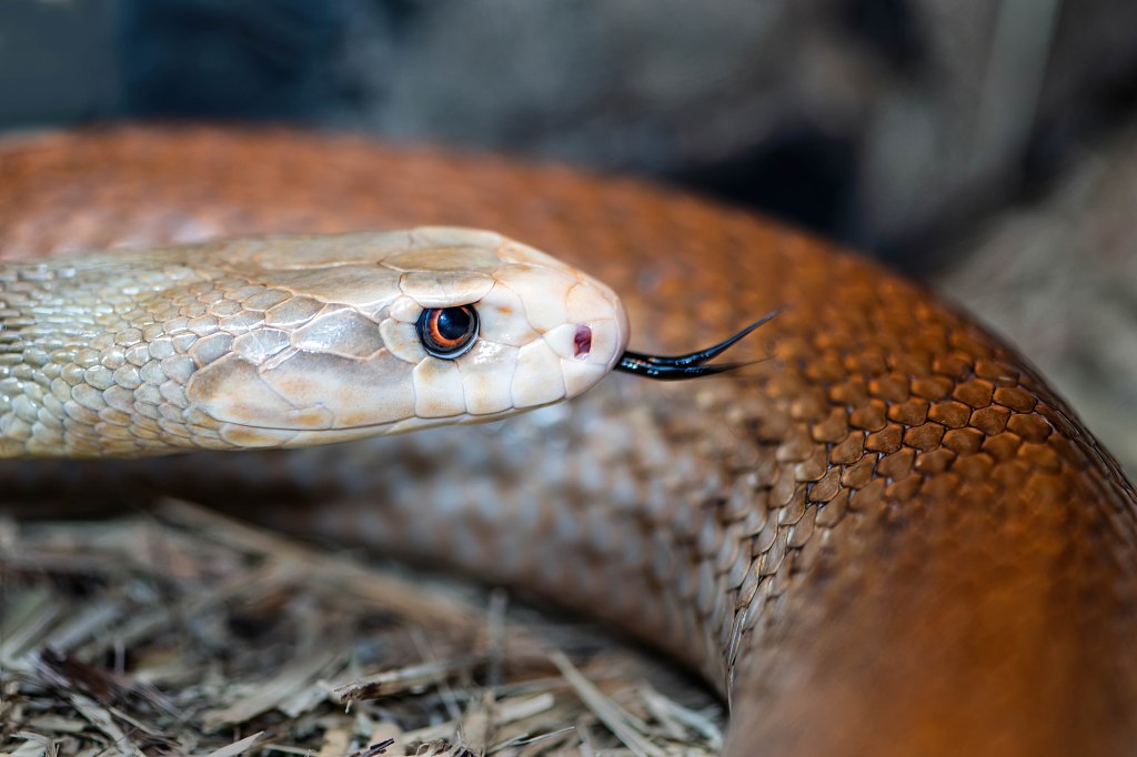 The world’s most venomous type of snake, the Inland Taipan, eating a dead rat. Oxyuranus microlepidotus. Photo: David Clode, taken at Hartleys Crocodile Adventures near Cairns in Australia.