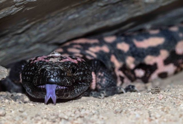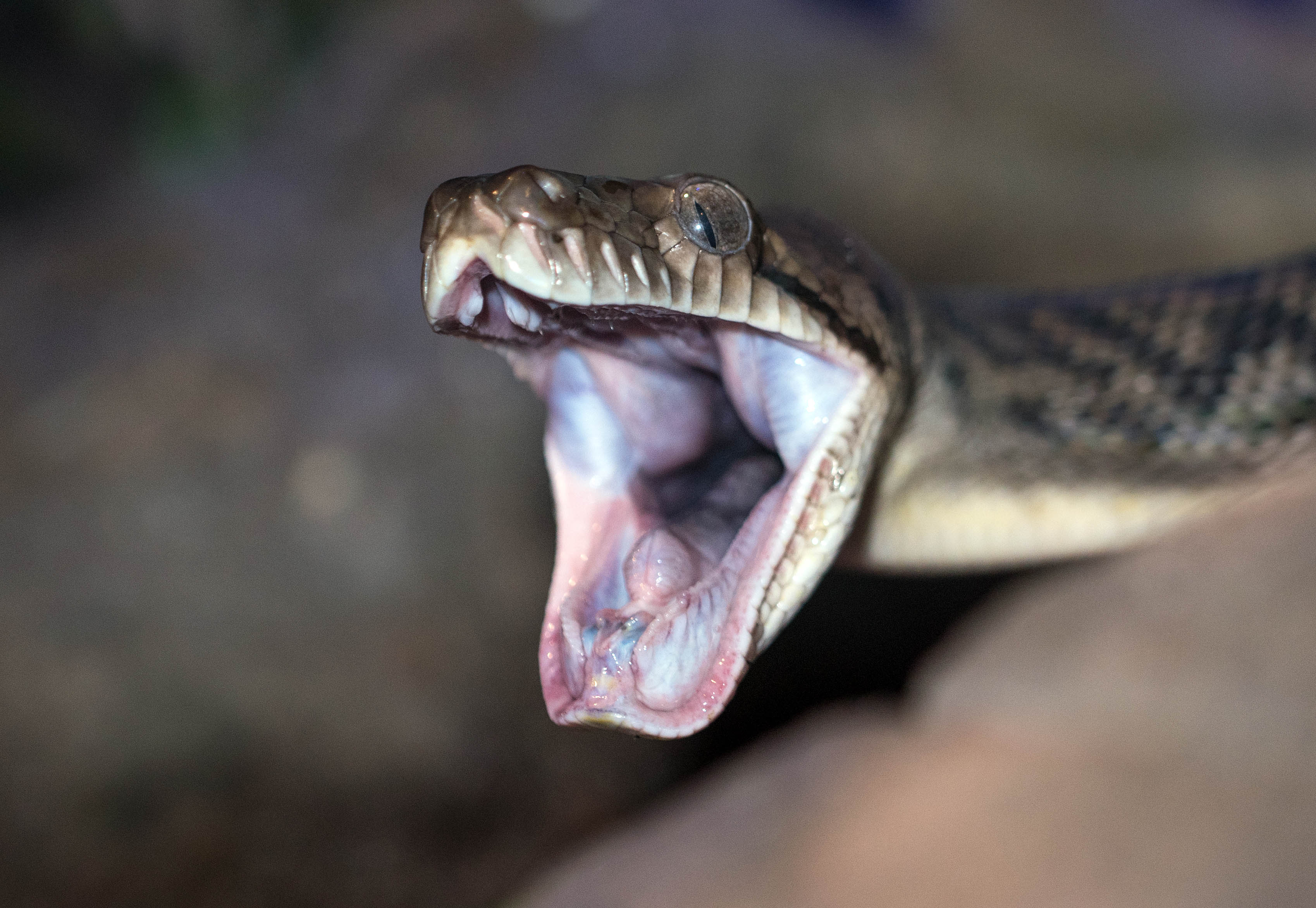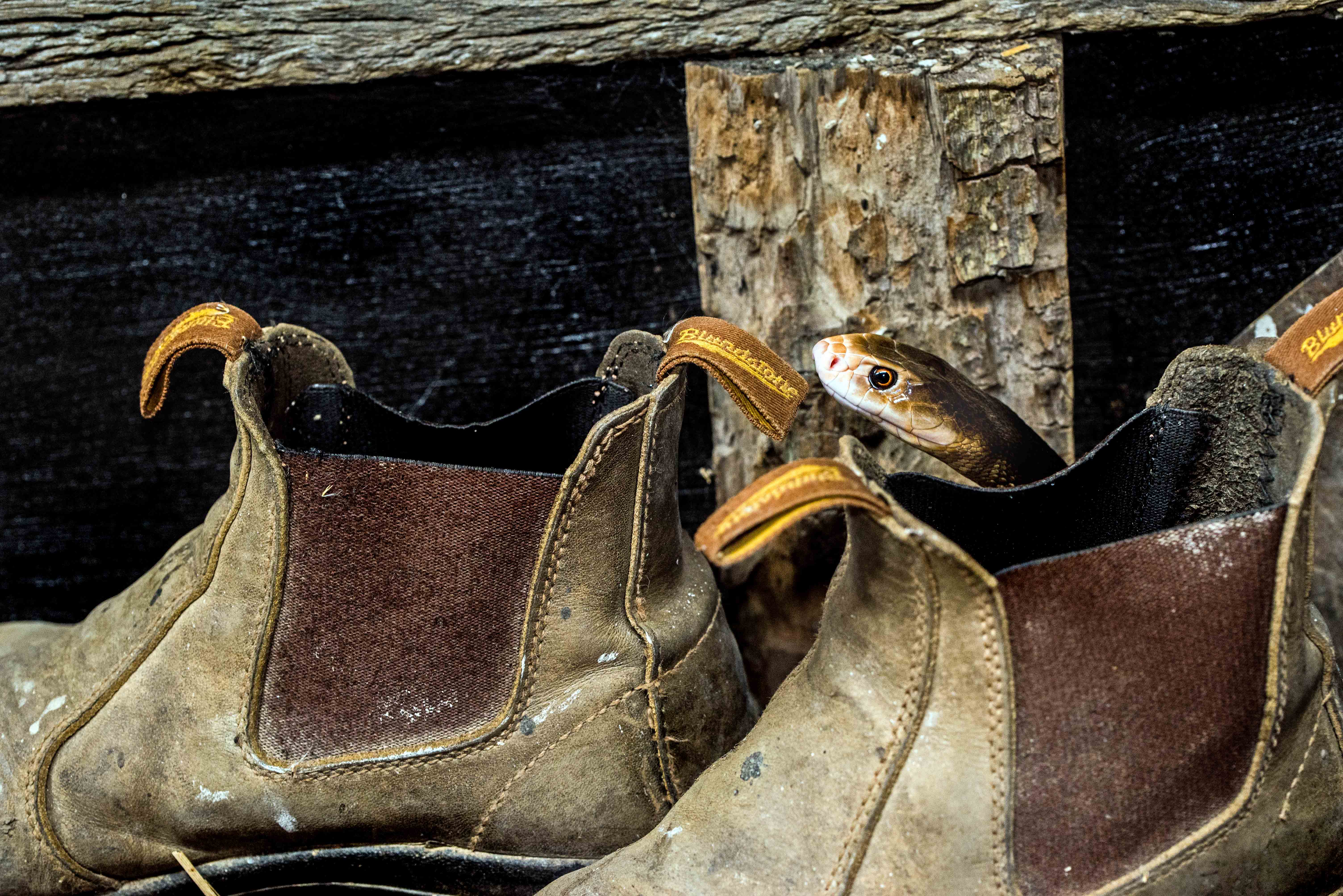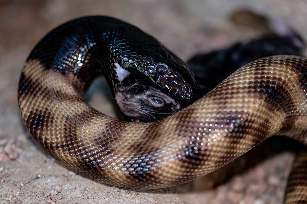 A Tiger Snake finishes it’s meal of a dead rat. Photo: David Clode. Hartleys Crocodile Adventures, Australia.