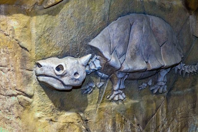 Cast of a fossilised giant turtle or tortoise at Cairns Aquarium. Photo: David Clode.