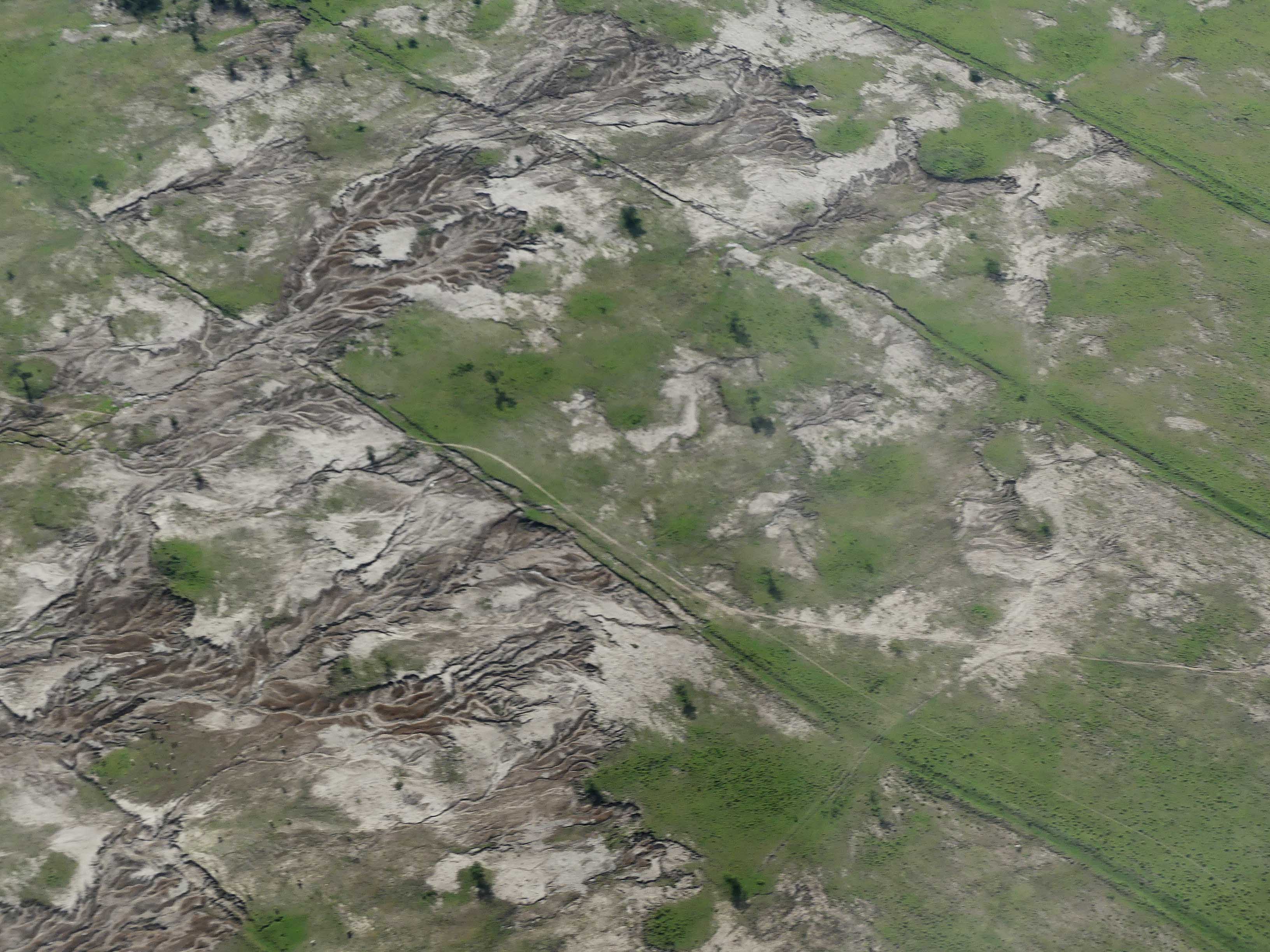 The end result may be that natural vegetation and previously productive agricultural land turns into dongas and dust bowls. (donga is a South African name for an erosion gully).