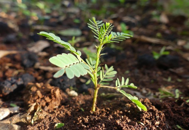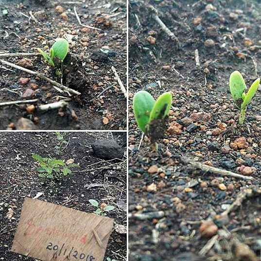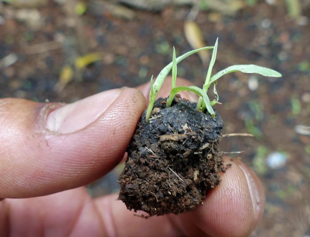 Seed ball. Acacia seedling germinating from a seed ball. Photo: Teddy Kinyanjui, Kenya Seedball company.