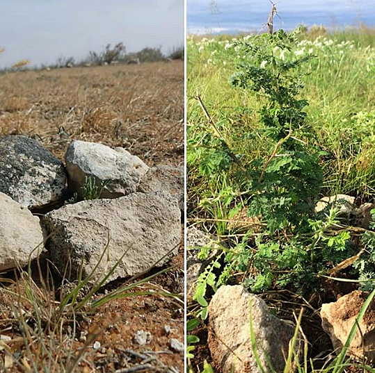 Nitrogen-fixing Sesbania sesban is one of the fastest growing trees in the world, established in this case by seed balls.
