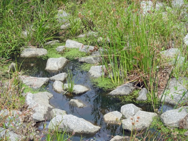 This area is designed to capture and store runoff so that less water enters the storm water darinage system during intense rain fall. After a few years, the planting has established well, and the wildlife is moving in.