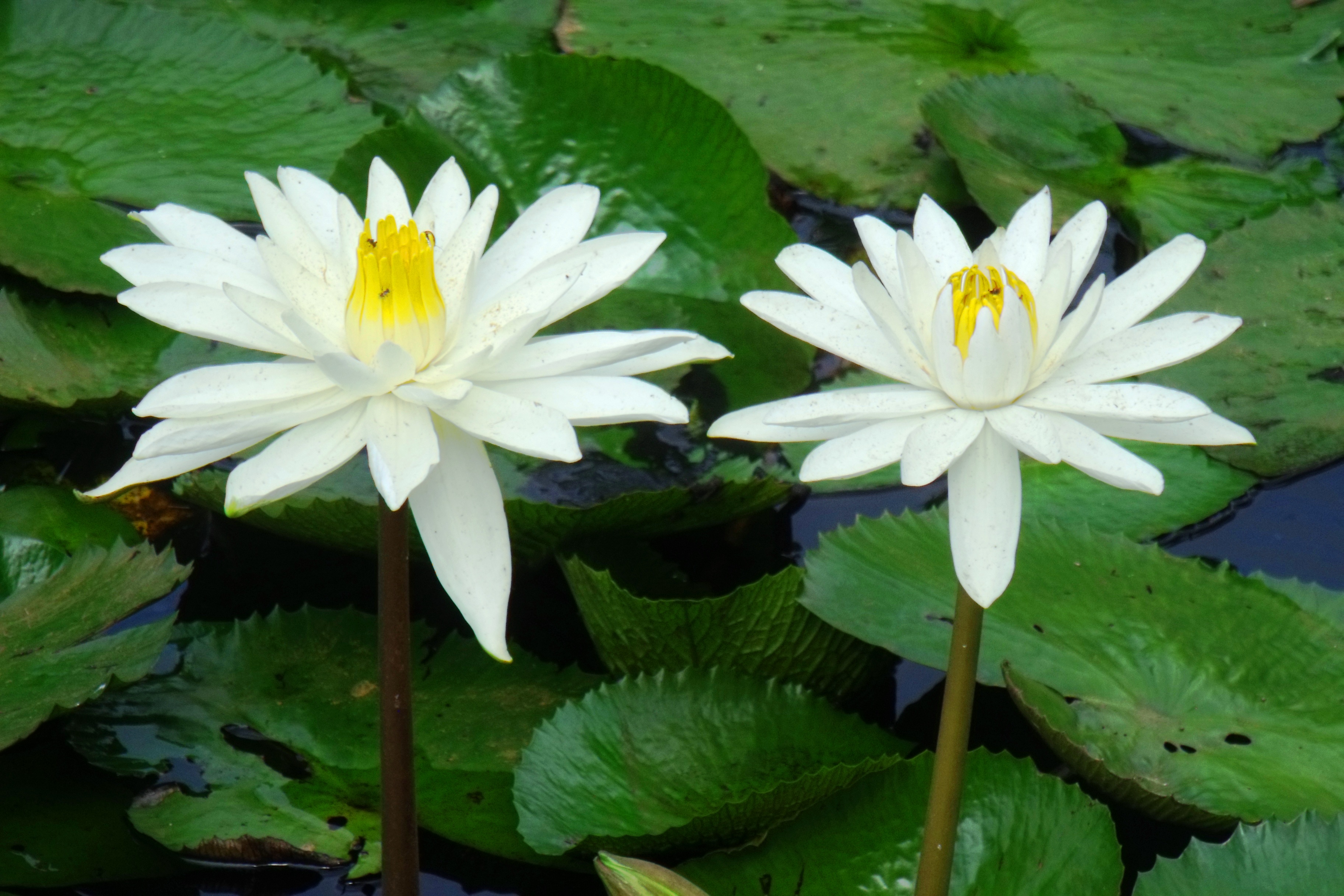 Floating surface leaves and flowers are also important, such as water lilies eg. Nymphaea spp., Nymphoides indica and lotus lilies (Nelumbo nucifera).
