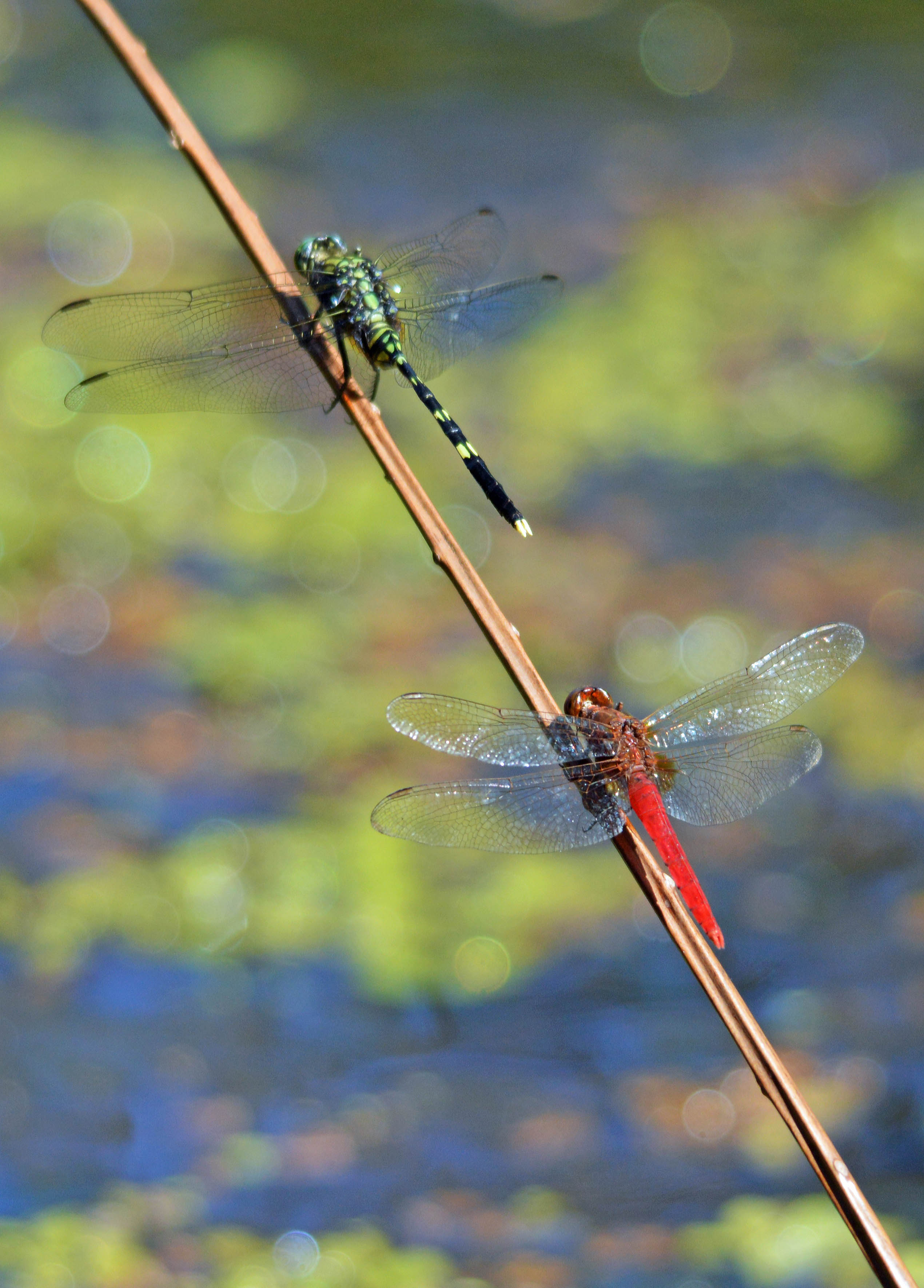 Logs (preferably hollow), dead trees or large branches which lie at an angle from the bank into the water or out low across the water are likely to be used by reptiles such as fresh water tortoises (terrapins), lizards such as iguanas and Varanus spp., and snakes for basking. Some of these animals like to drop into the water and hide underwater if they see a predator approaching.