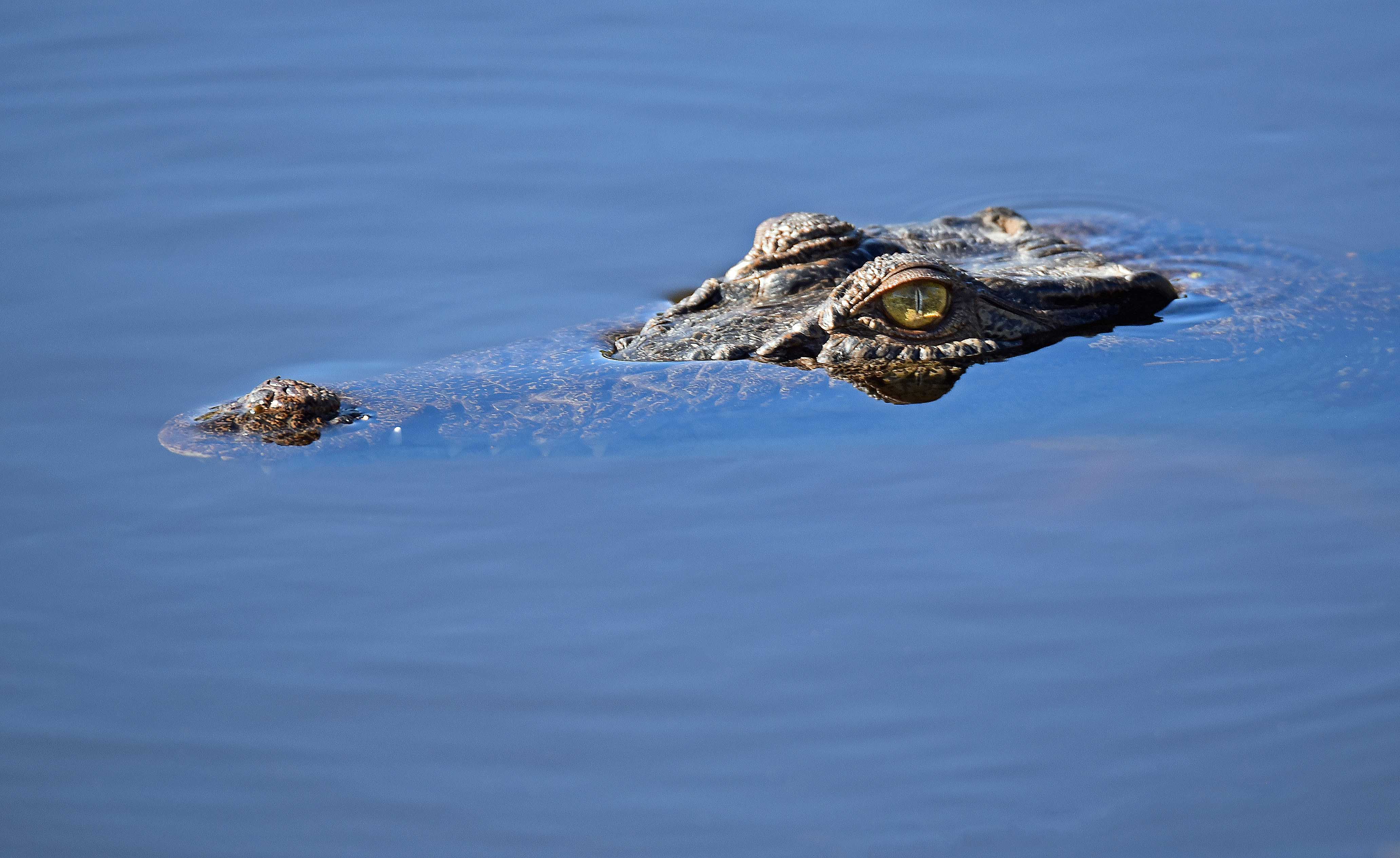 Wetlands are home to all sorts of wildlife and can be designed and managed to provide a haven for wildlife. A more unusual example of this occurred on July 25 2016, when I was taking photos of birds at the lake at Half Moon Bay Golf club (Yorkeys, Cairns, Australia). While I was on the bank of the lake a 1.5 metre crocodile stalked me, and swam over to about 3-4 metres from me to investigate. At this size, the crocodile was unlikely to attack an adult, but it was unnerving nevertheless. It may have been a different story for a small dog or child. The photos are in sequence: