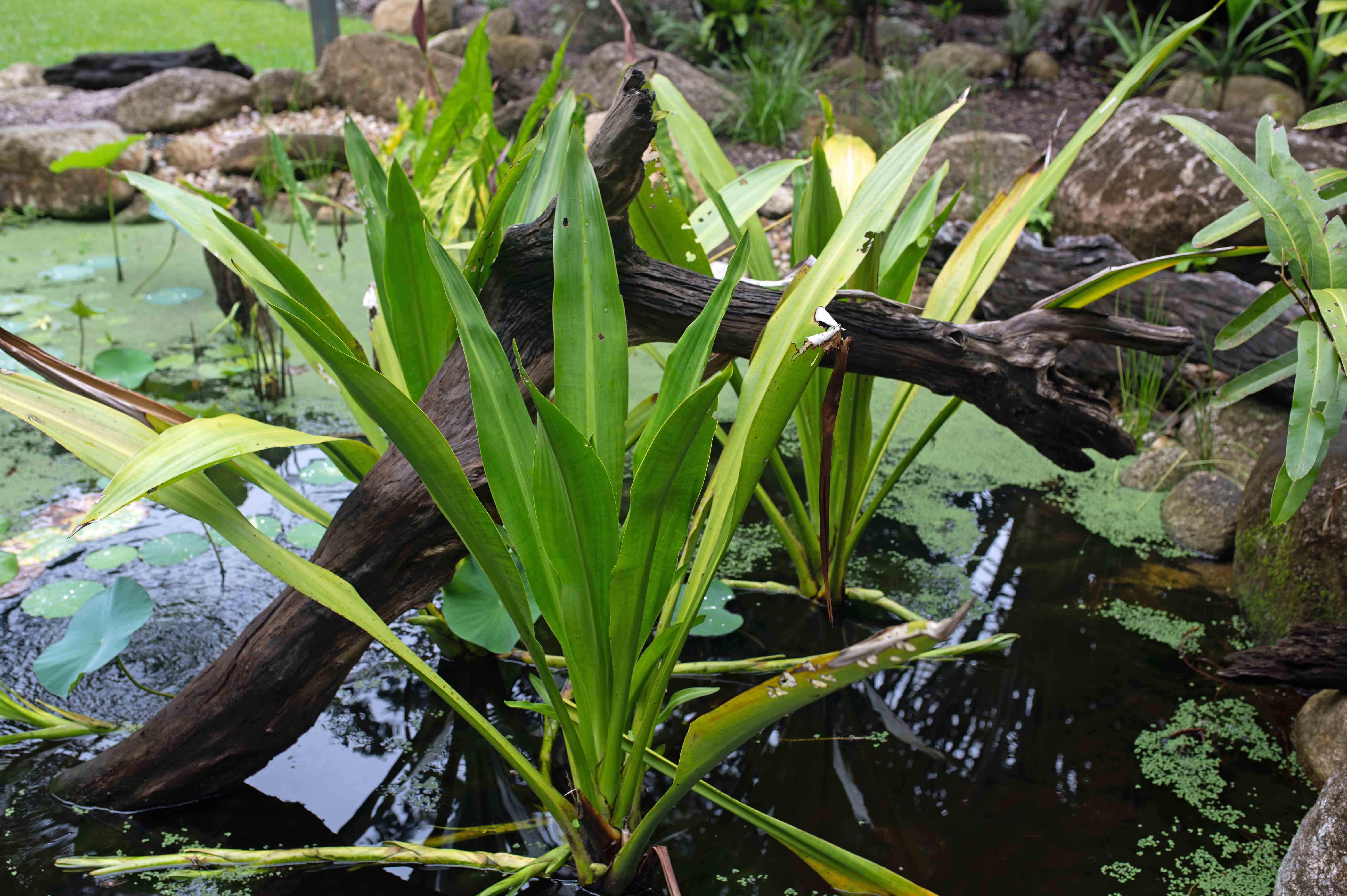A wetland should ideally include surface floating plants such as duckweeds (eg. Lemna spp., Spirodella spp., Wolffia spp.) and Azolla spp. These provide food for many types of aquatic birds and herbivorous fish, tadpoles etc.